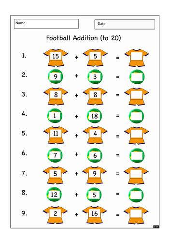 Printable Football Themed Math Worksheets | Math ... Description The Make, Take & Teach Football Addition activity is fun way of practicing addition facts to 12. Simply print the footballs on card stock and gather dice and you'll have a ready-made math center activity. If you like this activity, be sure to check our other sports-themed activities: The Big Game!